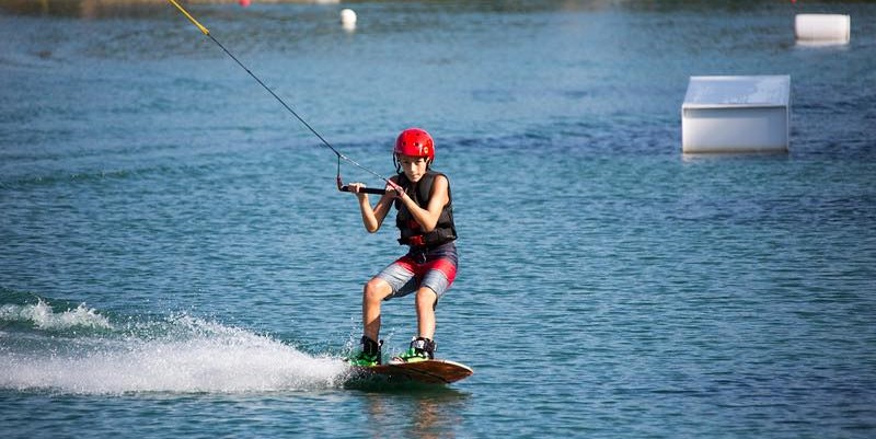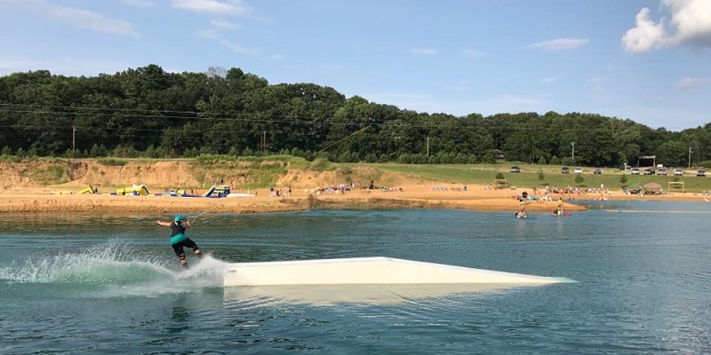 Wakeboard Cable Park offering Wakeboarding (rentals included), Stand up Paddle Boards, Kayaks, Inflatable Water Park, Beach, Tiki Huts on the Beach, and Games for Rent.