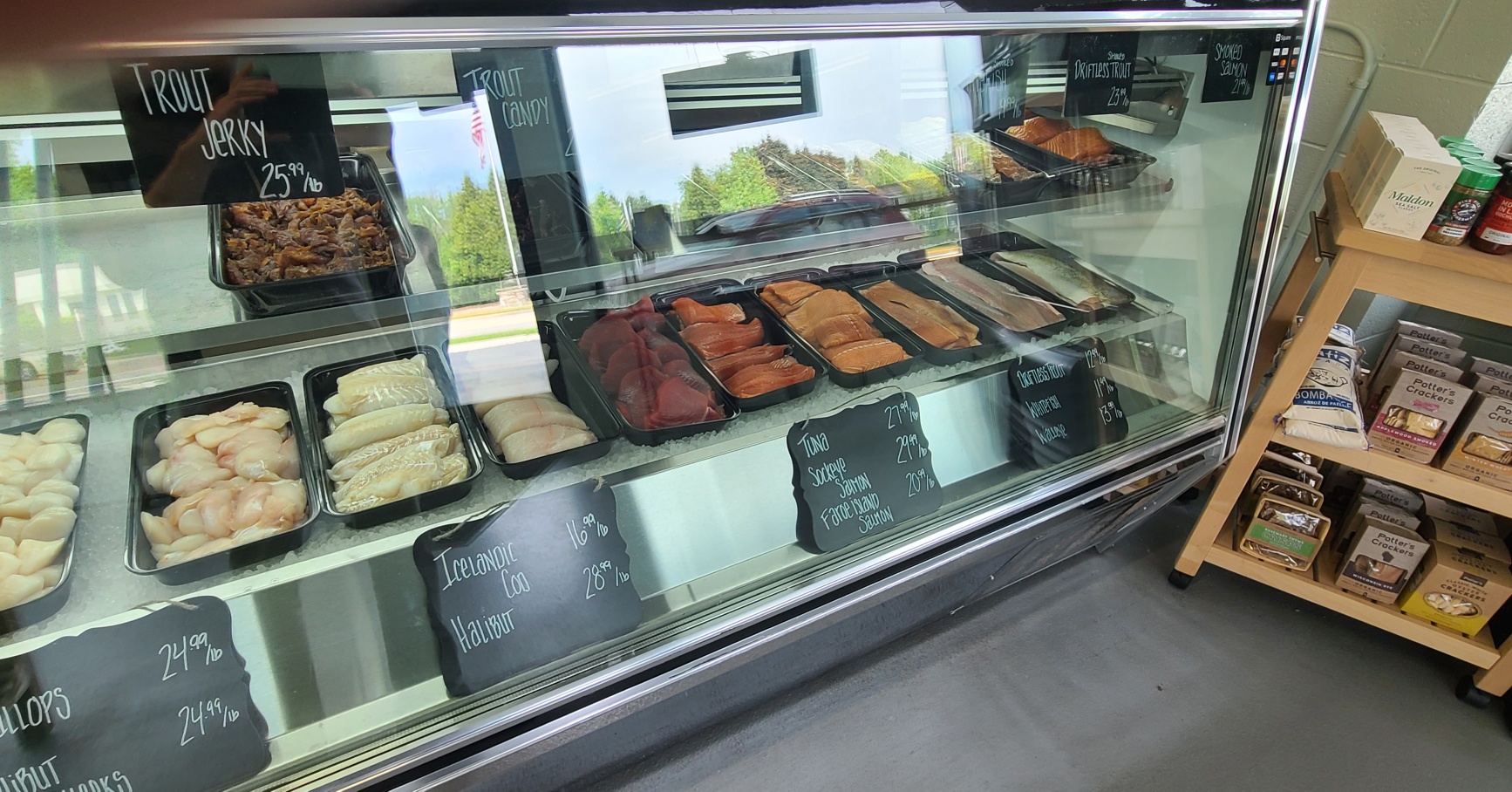 Plymouth Springs Fish Co. is a premium smokehouse and home of the famous Trout Jerky. We have a retail seafood market in Plymouth. We sell our farm raised rainbow trout, along with other fresh seafood such as Shrimp, Scallops, Perch, Cod, Halibut, Swordfish, Sockeye, Red Grouper, Whitefish, Walleye, Clams, Mussels, Oysters, Prawns Trout, Salmon Candy, Smoked Whitefish, Smoked Trout, Smoked salmon